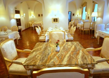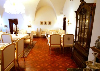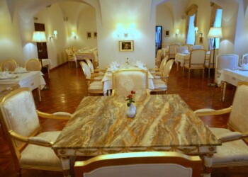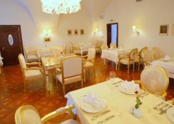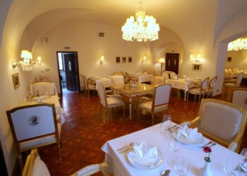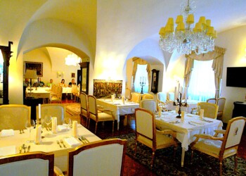Reštaurácia sa nachádza na prízemí pravého krídla a prioritne je určená pre prevádzku á la carte. Je tu však možné realizovať menšie svadby do 60 osôb, ako aj rôzne druhy eventov. Reštaurácia je vybavená audio/video technikou. Mobiliár sály predstavujú kópie historického nábytku z doby Ludviga XIV s povrchovou úpravou plátkového zlata. Osvetlenie je formou historickýh lustrov Carate s použitím kryštálov K1.