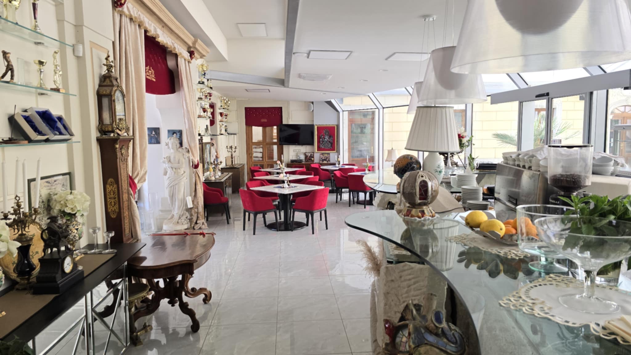 Vstupný Foyer je priestor pre prevádzku kaviarne. Je tu umiestnené umelecké dielo barového telesa s umiestneným historickým artefaktov. Priestor je vybavený audio/video technikou. Priestor je určený pre bežnú dennú prevádzku, avšak je ho možné využívať na rôzne druhy menej náročných, resp. krátkodobých eventov formou recepcie.