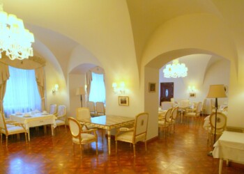 Reštaurácia sa nachádza na prízemí pravého krídla a prioritne je určená pre prevádzku á la carte. Je tu však možné realizovať menšie svadby do 60 osôb, ako aj rôzne druhy eventov. Reštaurácia je vybavená audio/video technikou. Mobiliár sály predstavujú kópie historického nábytku z doby Ludviga XIV s povrchovou úpravou plátkového zlata. Osvetlenie je formou historickýh lustrov Carate s použitím kryštálov K1.